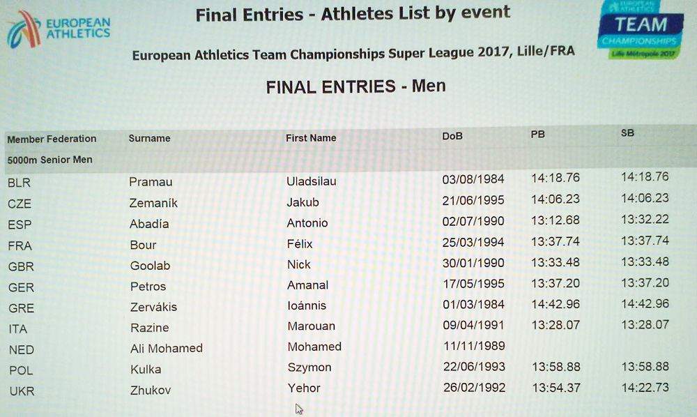 > 29.5. nw "europäische u23-saisonbestzeit"