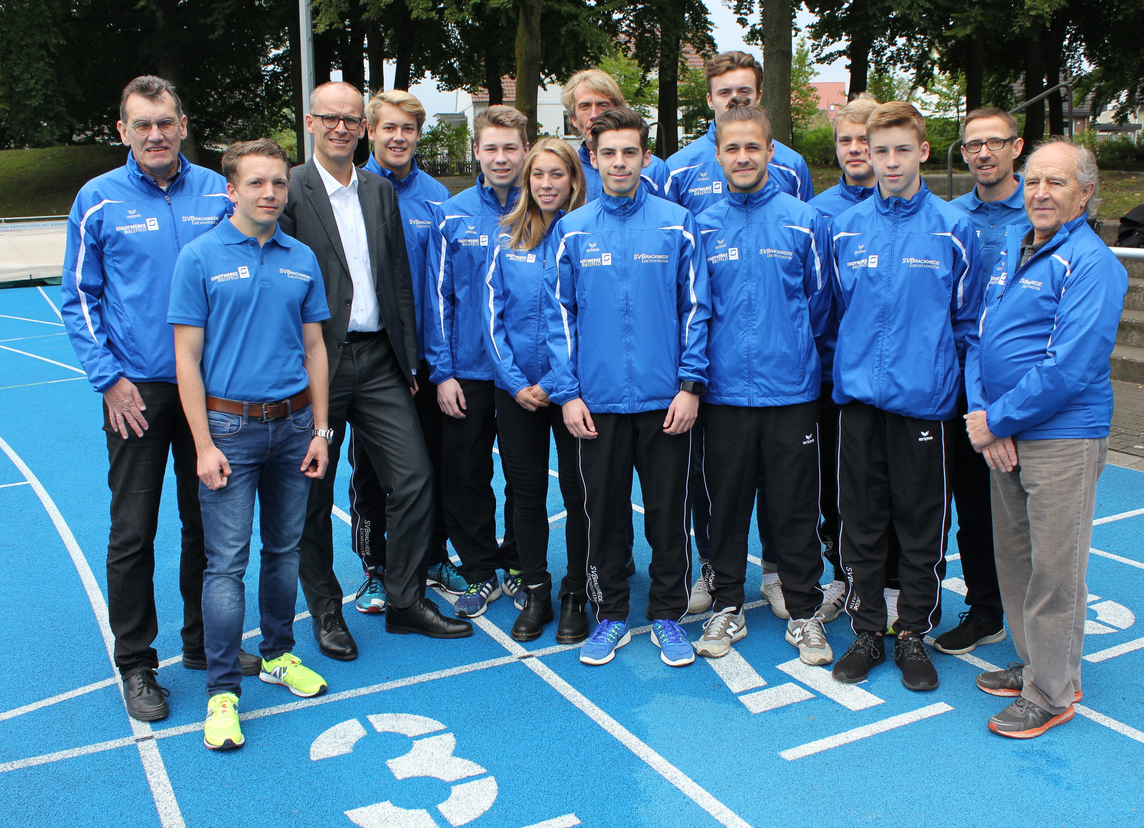Bei strahlendem Sonnenschein präsentierten die Leichtathleten der SV Brackwede ihr neues outfit unter Anwesenheit von Martin Uekmann,