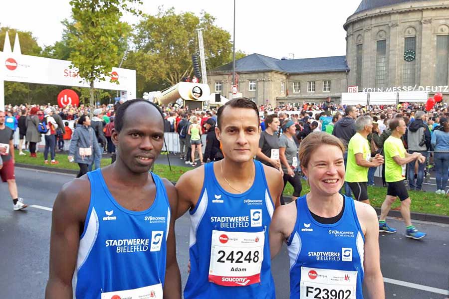 Thomas Heidbreder war mit drei Athleten beim Kölner Halbmarathon. Die Sonne lachte am Rhein und der Trainer freute sich über drei sehr gute Ergebnisse.