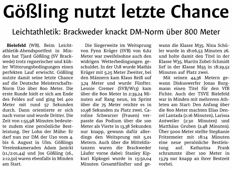 > 23.6. wb "gößling läuft neue bestzeit"