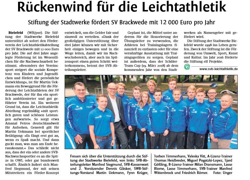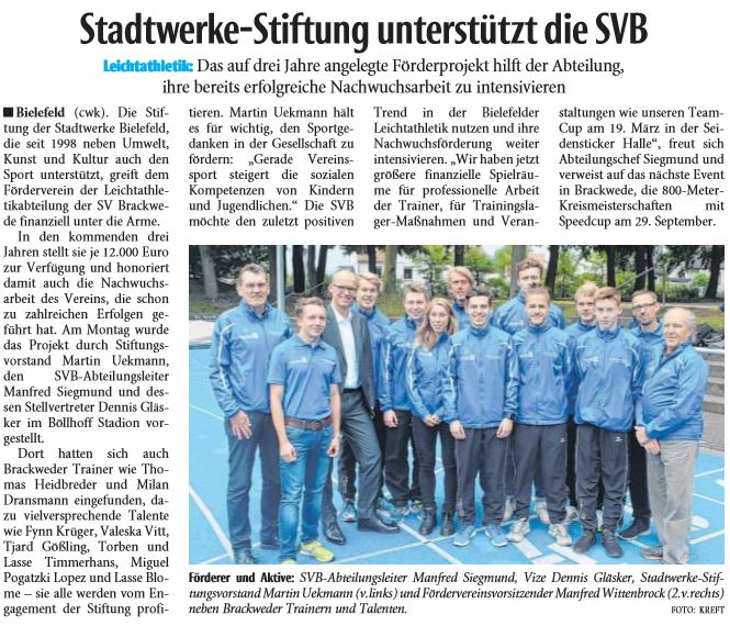 18.09.2017 | Stadtwerke Stiftung unterstützt SVB Leichtathleten